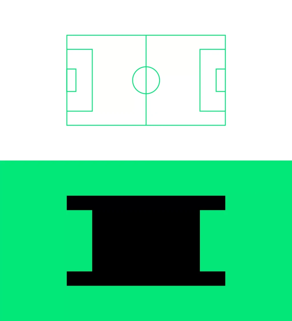 ICON’s logo was born from the universal markings found on every football pitch in the world, with the shape of the slab serif ‘I’ forming naturally from above.