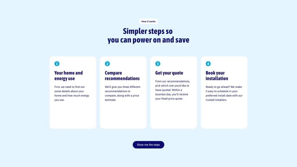 From the outset, our human-centred design approach aimed to create a seamless, intuitive experience for customers who had typically faced the friction and complexity of the solar and battery market, including weeks of back-and-forth, confusing quotes, and high-pressure sales tactics.